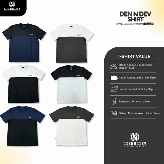 DEN N DEV Kaos Kombinasi 2 Warna Baju Belah Colour Block Katun Distro