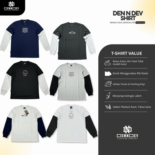 DEN N DEV Double Layer Long Sleeve T-Shirt – Kaos Lengan Panjang Premium Stylish Kekinian