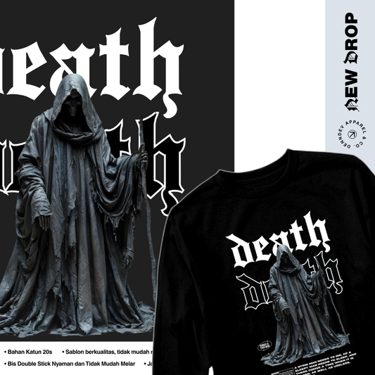 DEN N DEV - Kaos Lengan Panjang Pria Death Graphic T-Shirt Long Sleeve