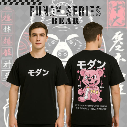 DEN N DEV Kaos Oversize Pria Motif BEAR T-Shirt Keren Baju Distro Oversize Terlaris